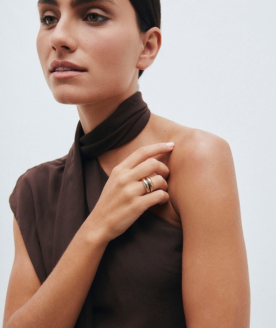 Este anillo ancho Horizonte, bañado con una capa gruesa de oro macizo de 18 kt, asegura una durabilidad excepcional. Su piedra esmaltada en tono marrón chocolate, color tendencia de la temporada, aporta textura y brillo, otorgando un estilo distintivo. Disponible en dos rangos de talla, se adapta cómodamente al usuario. Forma parte de la Colección MA de María G. de Jaime, inspirada en la luz de los momentos más sutiles, con diseños de líneas puras y contrastes que acompañan naturalmente el día a día. Una pieza con intención y elegancia atemporal.El anillo ancho Horizonte combina esmaltes en tono marrón con un baño de oro macizo de 18 kt, ofreciendo una pieza hipoalergénica que garantiza confort y durabilidad. Su diseño elegante y discreto refleja la filosofía de que la verdadera elegancia no deslumbra, sino que brilla con sentido. Pertenece a la Colección María G. De Jaime, destacando por su acabado sofisticado y una longitud interior que varía entre 15,9 mm y 17,2 mm, adaptándose perfectamente para un uso diario con estilo y comodidad.