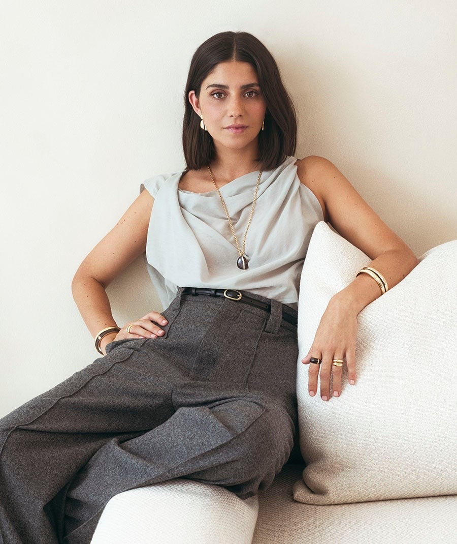 Anillo escultórico Intervalo bañado con una gruesa capa de oro macizo de 18 kt, lo que garantiza una mayor durabilidad. Destaca por la piedra Esmaltes en tono marrón chocolate, color protagonista de la temporada, que aporta textura, brillo y un gesto de estilo propio. Está disponible en dos tallas: la talla 10-14, con un diámetro interior de 15,9 mm a 17,2 mm y la talla 16-20, con un diámetro interior de 17,8 mm a 19,1 mm. Estilo pinkie, diseñado para llevar en el menique. De la Colección MA de María G. de Jaime, que nace de una búsqueda intima para capturar esa luz que aparece en los momentos más sutiles y que habita en cada una de nosotras. Piezas con intención, con formas puras y juegos de contrastes, que nos acompañan a diario y encuentran su lugar de forma natural. Porque la verdadera elegancia no deslumbra, simplemente brilla porque tiene sentido.