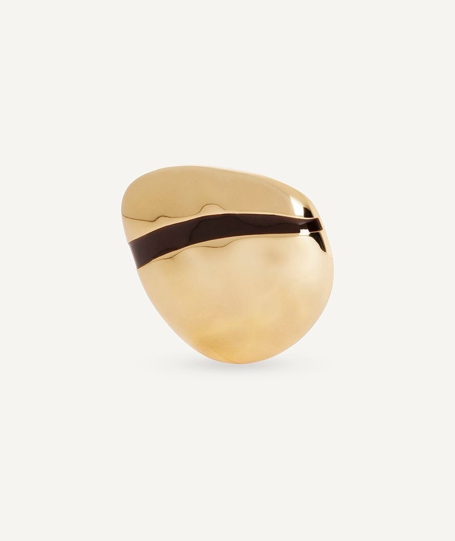 Este broche asimétrico Horizonte, bañado con una gruesa capa de oro macizo de 18 kt, ofrece una durabilidad excepcional. Su piedra de esmalte en tono marrón chocolate, color destacado de la temporada, aporta textura y un brillo sutil que realza el estilo personal. Con unas dimensiones de 40 x 5,2 mm, forma parte de la Colección MA de María G. de Jaime, concebida para reflejar la luz interna en momentos íntimos. Un diseño de formas puras y contrastes que aporta elegancia natural y sentido en el uso diario.