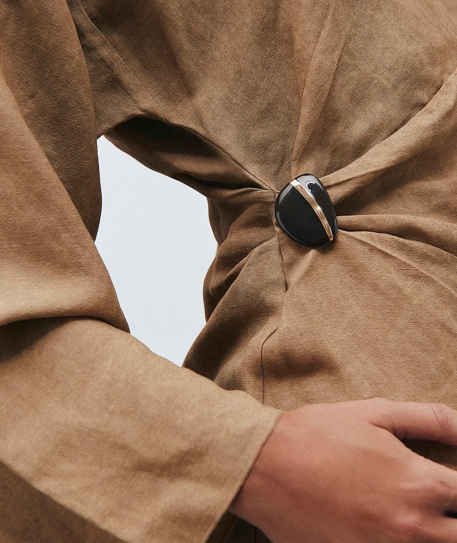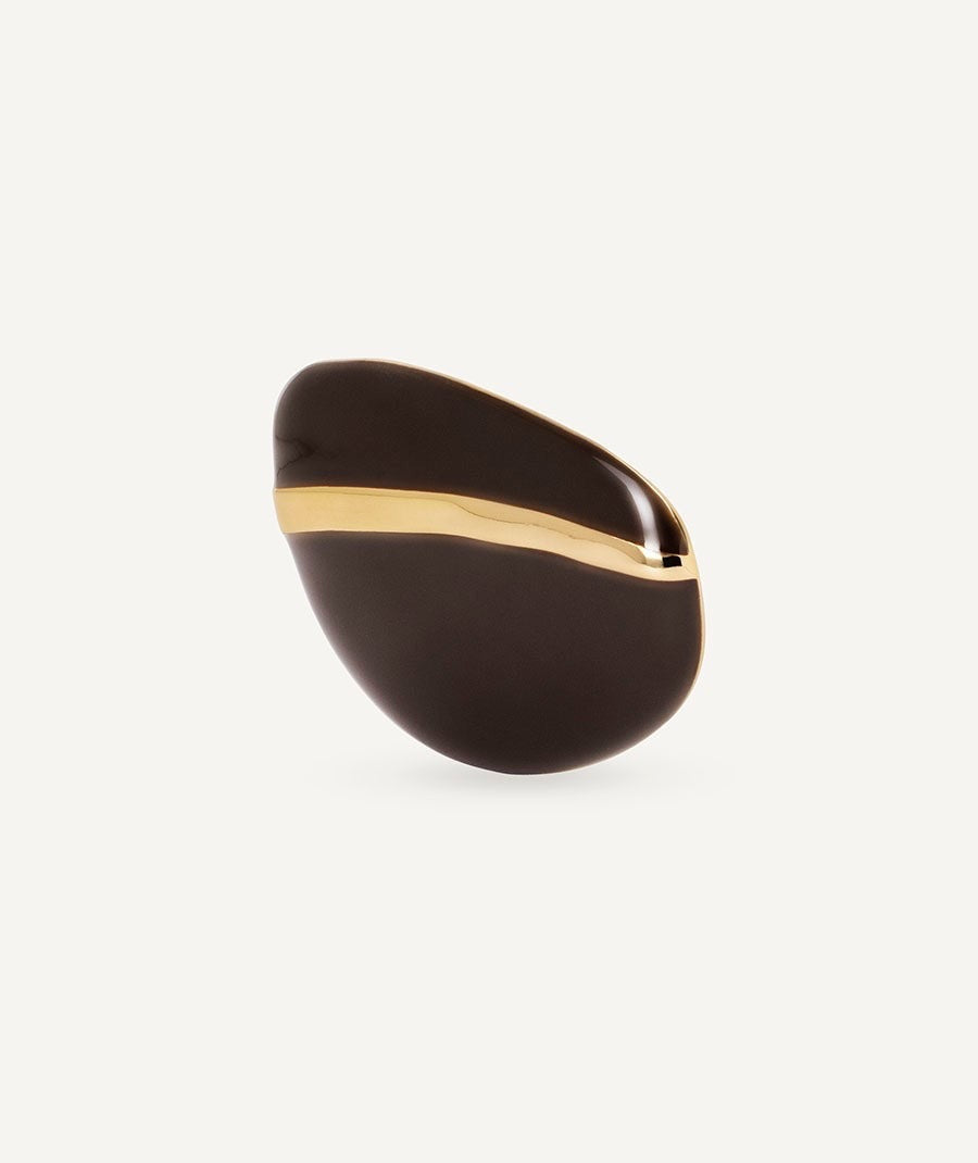Broche asimétrico Intervalo bañado con una gruesa capa de oro macizo de 18 kt, lo que garantiza una mayor durabilidad. Destaca por la piedra Esmaltes en tono marrón chocolate, color protagonista de la temporada, que aporta textura, brillo y un gesto de estilo propio. Tiene una medida de 40 x 5,2 mm. De la Colección MA de María G. de Jaime, que nace de una búsqueda intima para capturar esa luz que aparece en los momentos más sutiles y que habita en cada una de nosotras. Piezas con intención, con formas puras y juegos de contrastes, que nos acompañan a diario y encuentran su lugar de forma natural. Porque la verdadera elegancia no deslumbra, simplemente brilla porque tiene sentido.