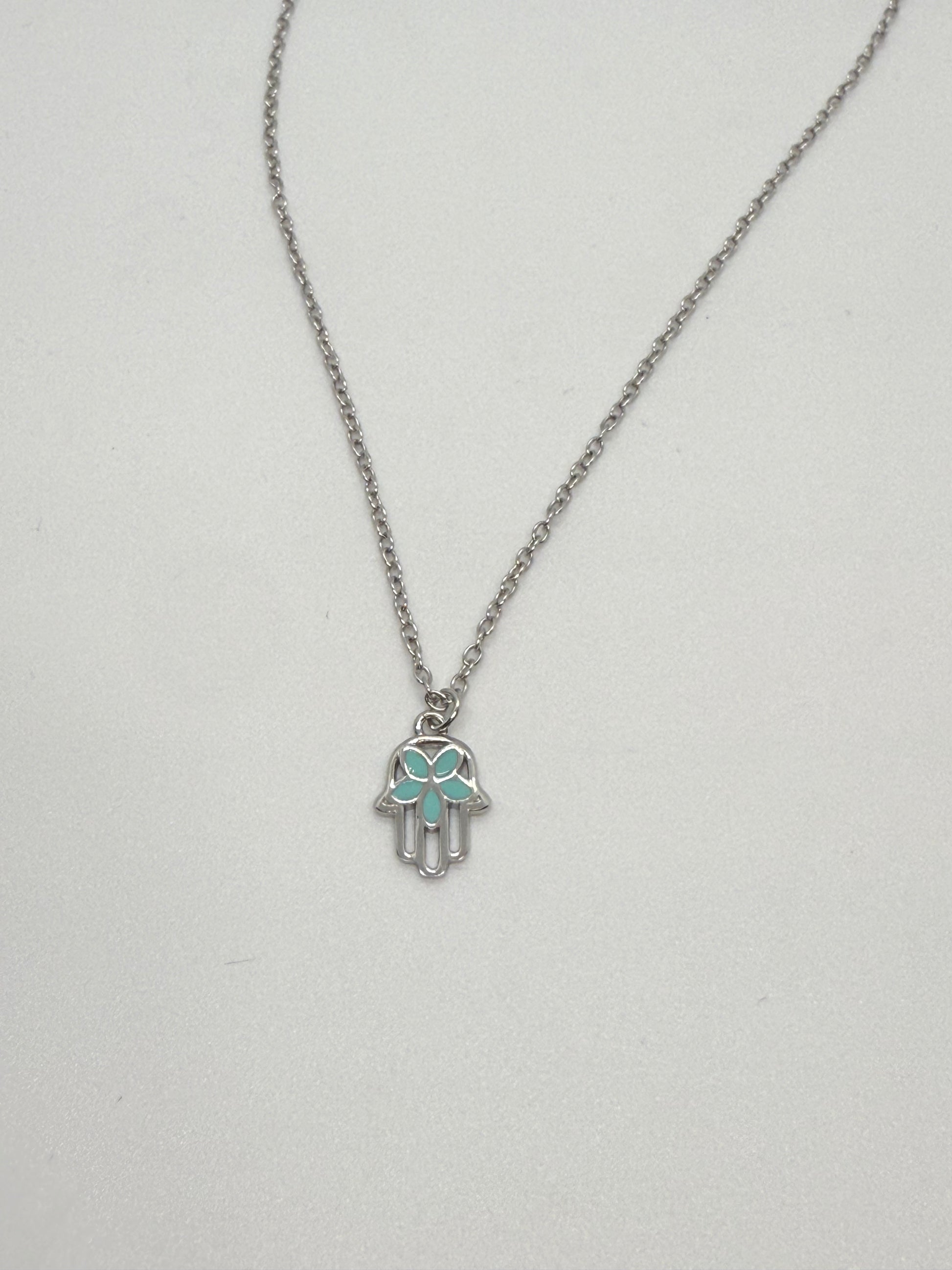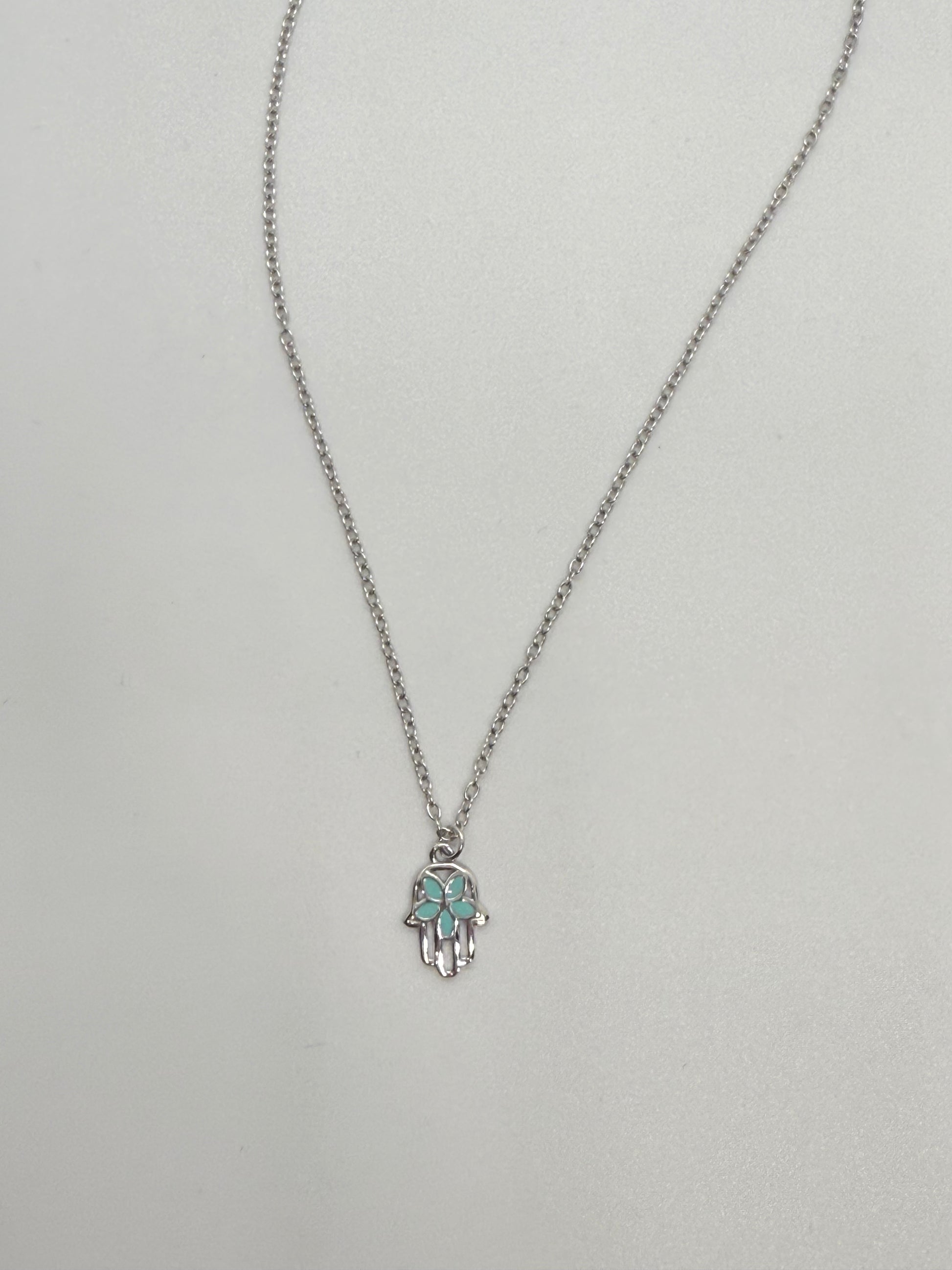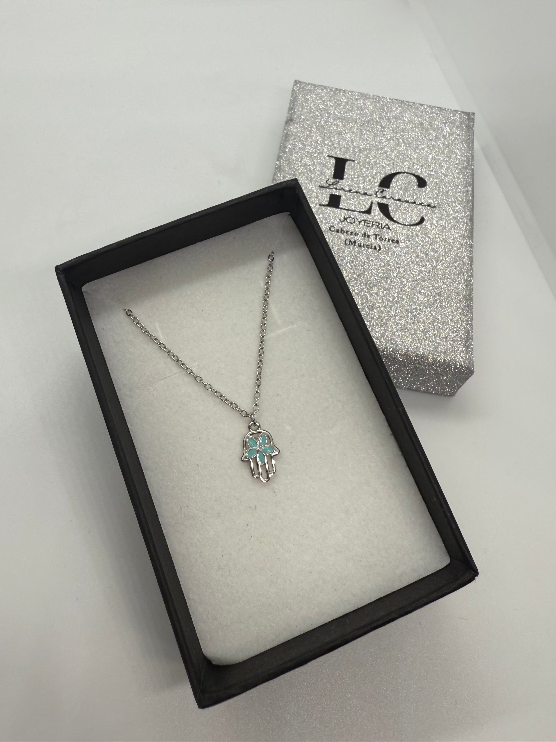 Este colgante de plata presenta una mano de Fátima, un símbolo de protección y bendición en culturas del Medio Oriente. Con su diseño elegante y significativo, es perfecto para añadir un toque de estilo y significado a cualquier atuendo. Fabricado con plata de alta calidad, este colgante es una joya atemporal que puede ser disfrutada por años.