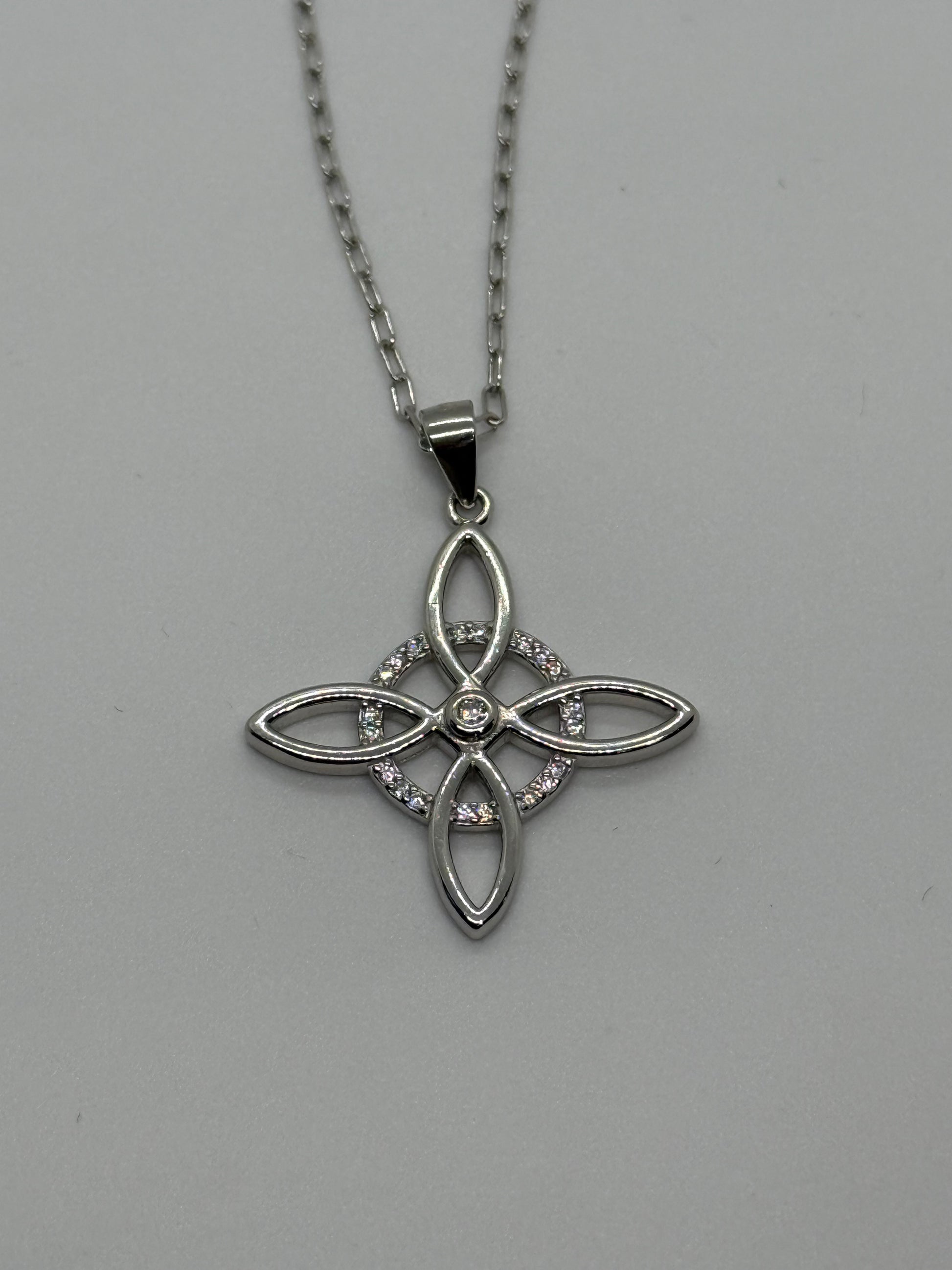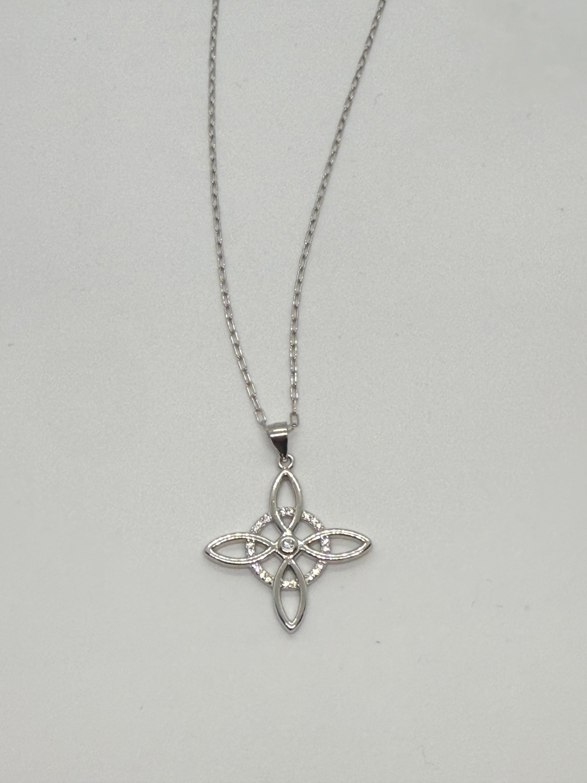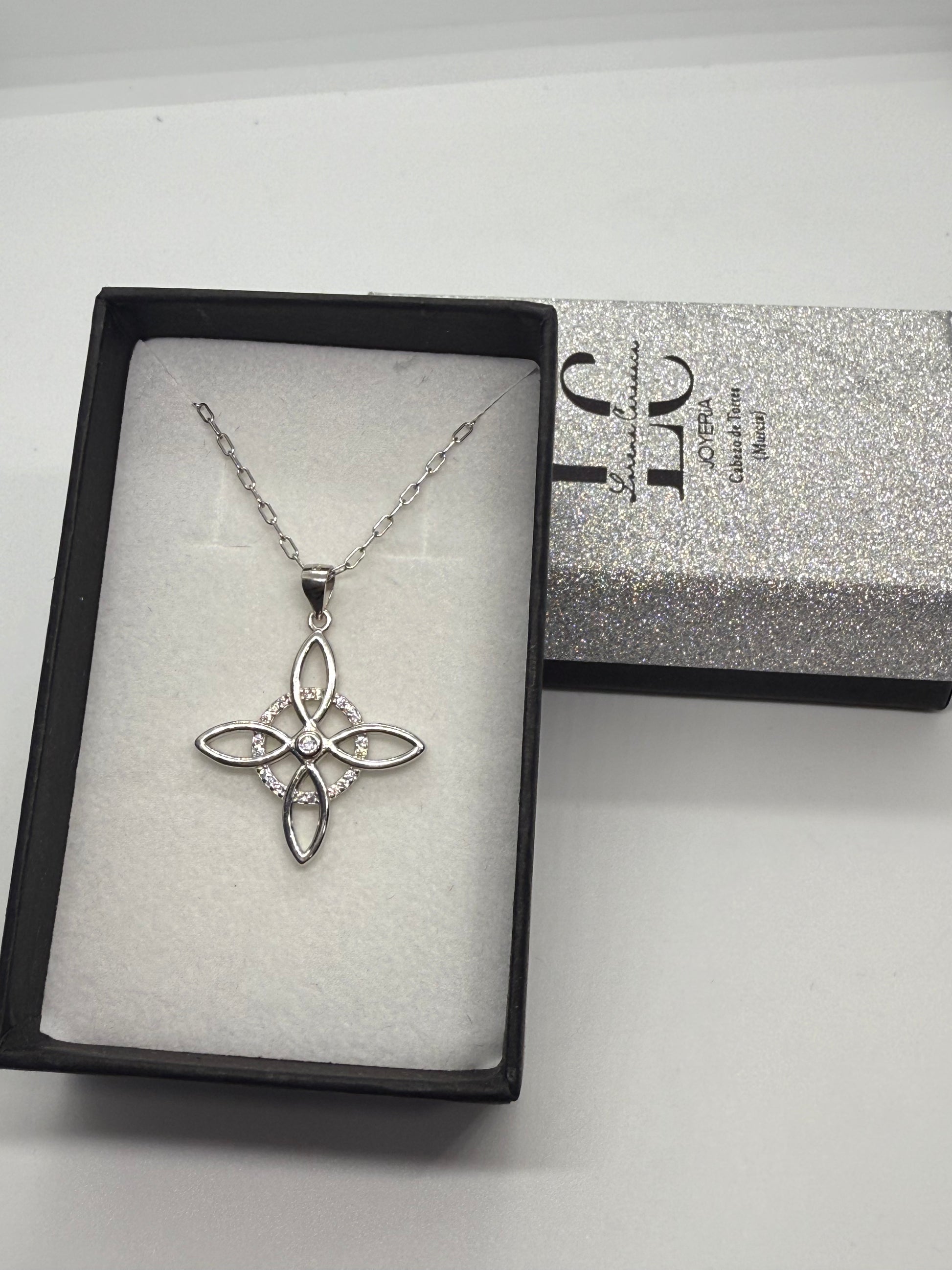 Este colgante con cadena presenta un nudo de bruja en plata, siendo un símbolo de protección y sabiduría en la cultura celta. Hecho a mano por expertos joyeros, esta pieza traerá consigo elegancia y significado. Ideal para aquellos interesados en la espiritualidad y la historia celta.