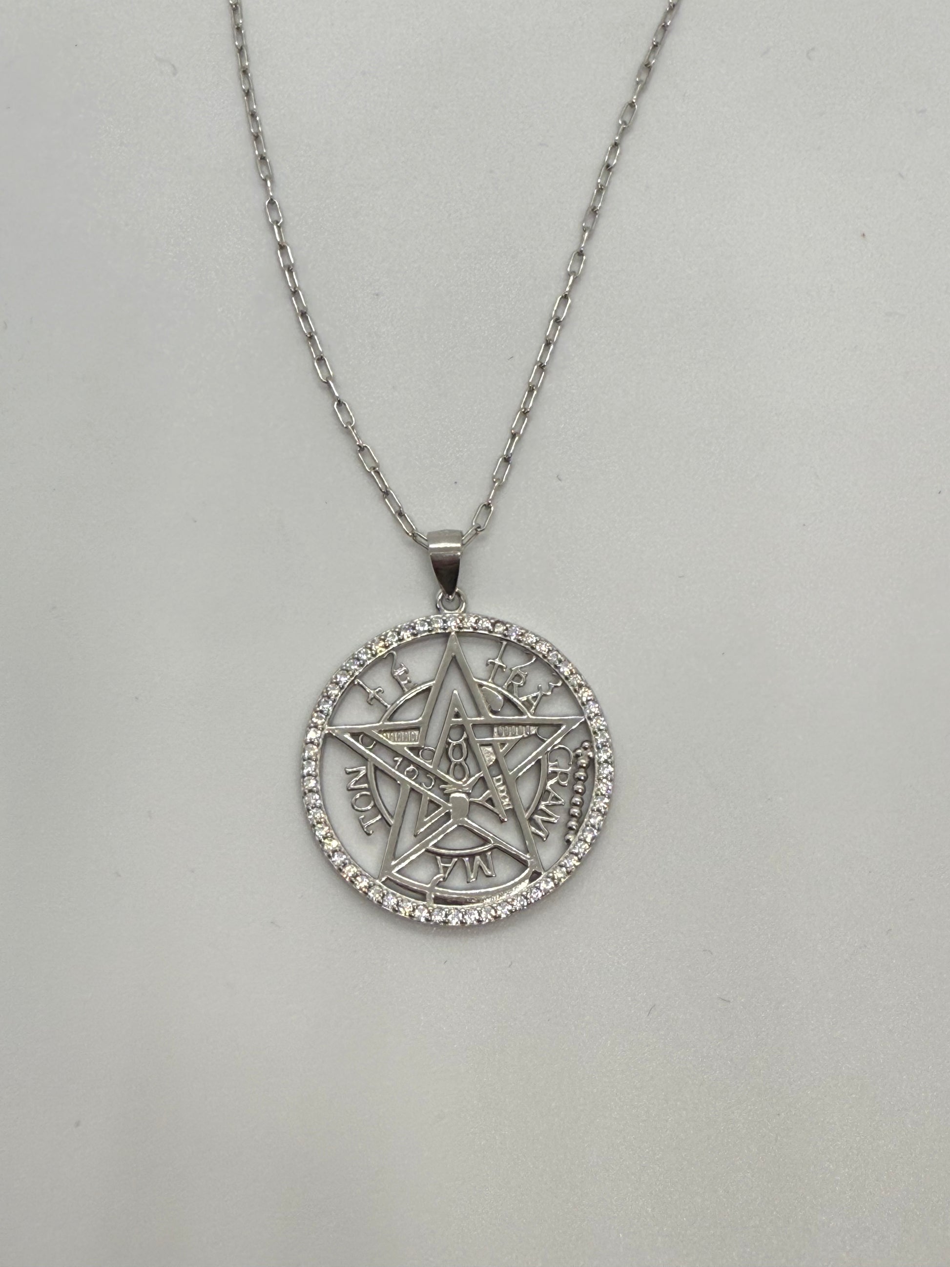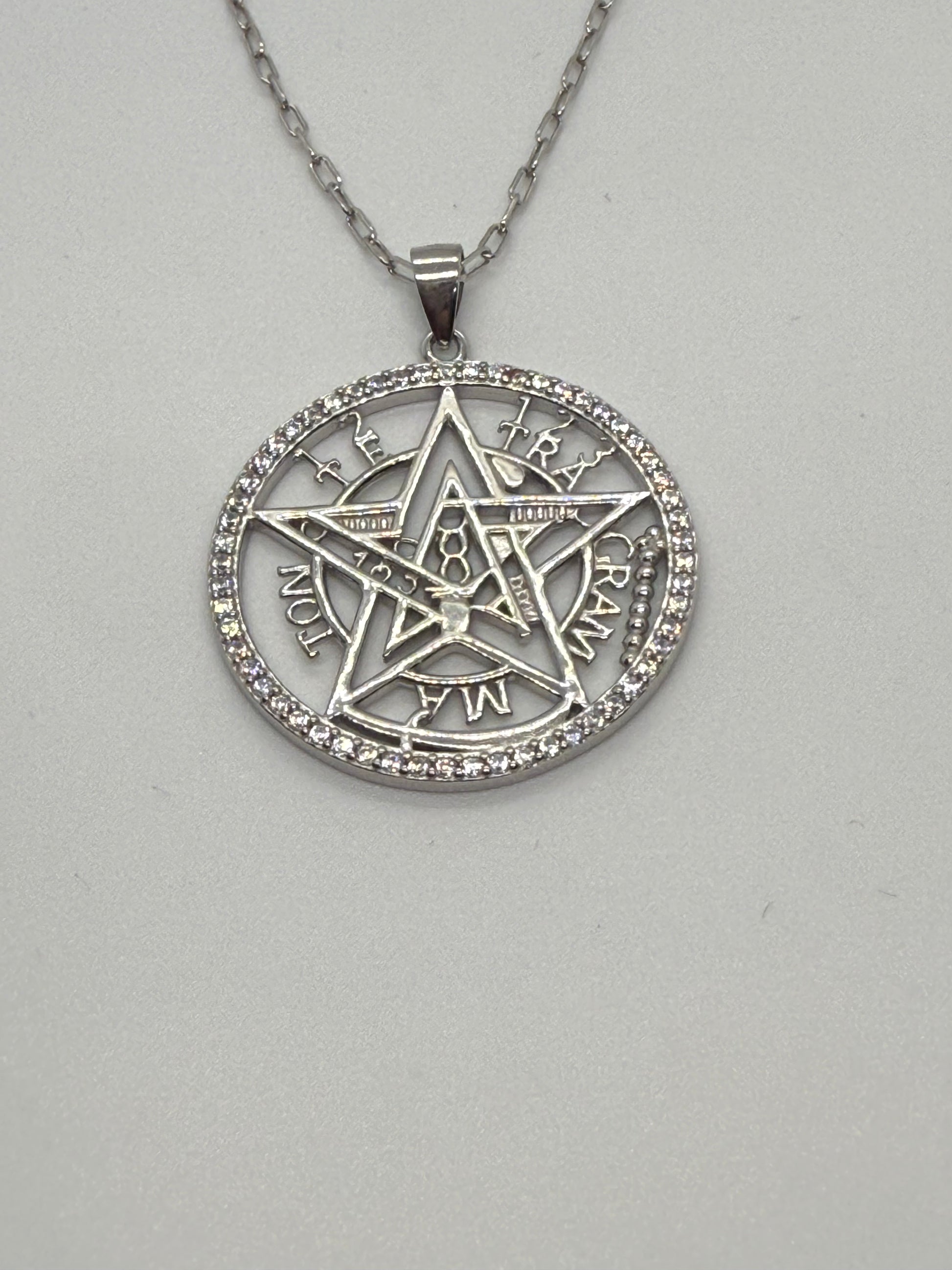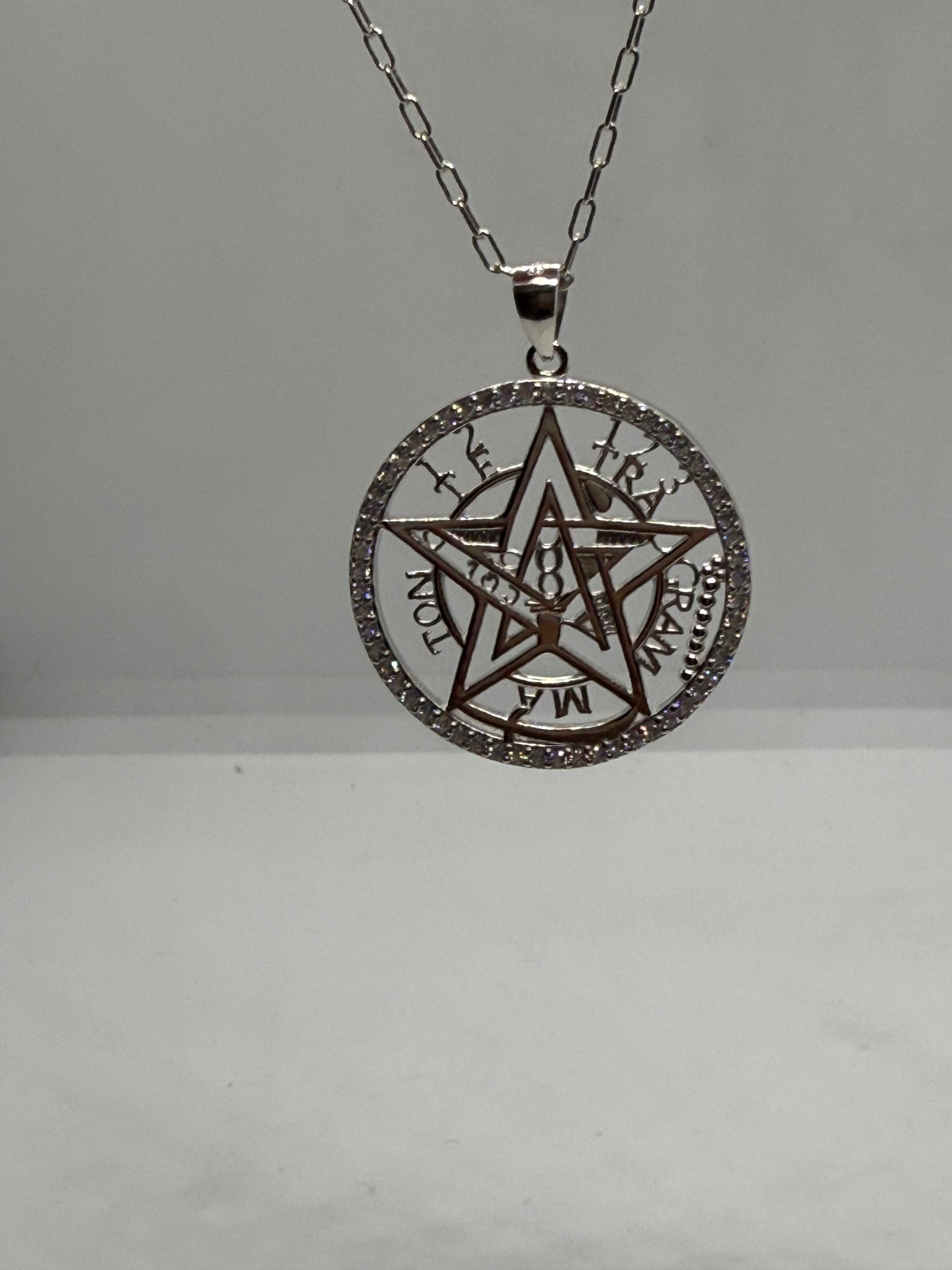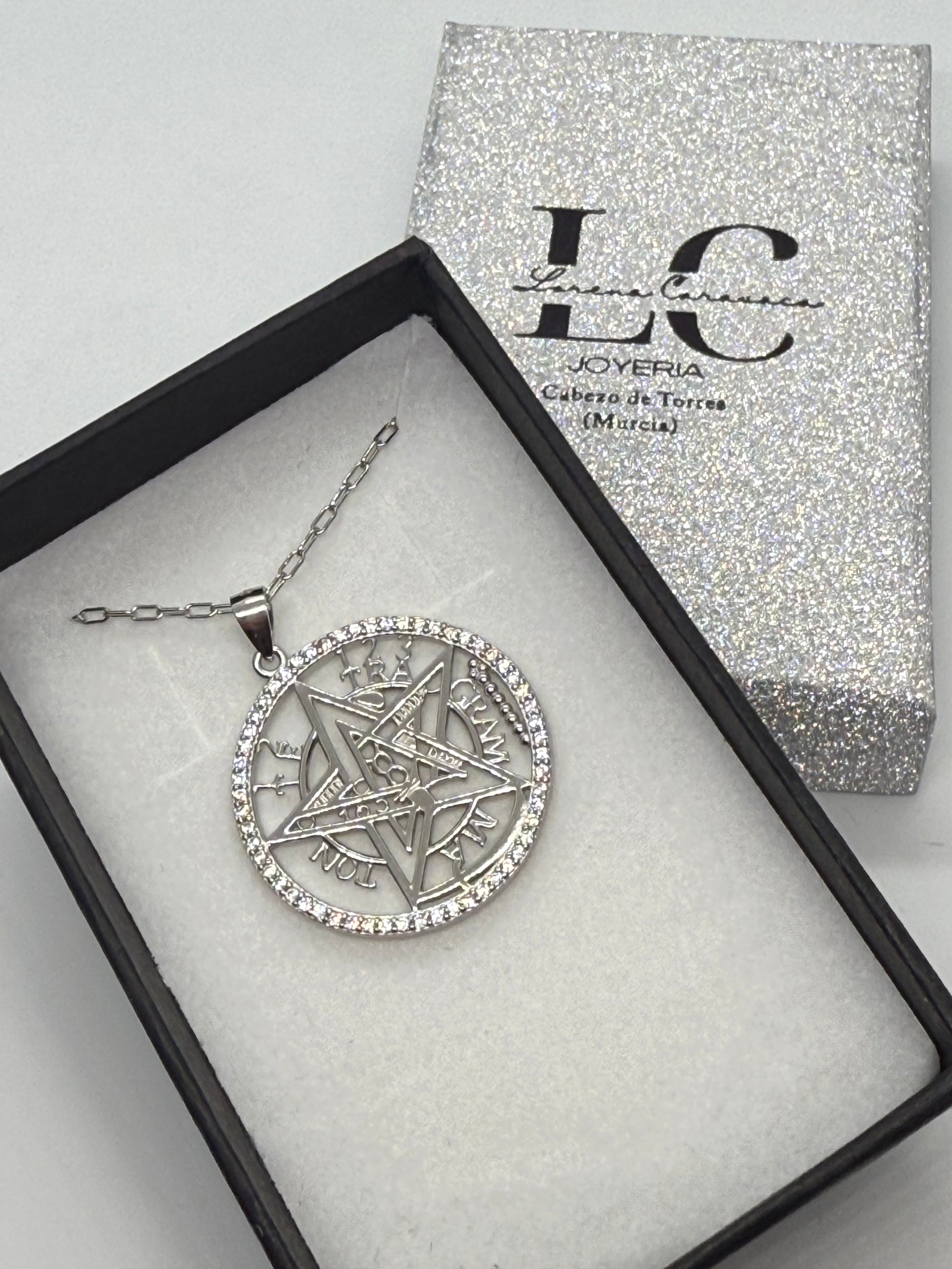 Este colgante de plata Tetragramatron es el complemento perfecto para cualquier atuendo. Con su diseño único e intricado, este colgante no sólo es una pieza de joyería, sino también un símbolo sagrado que representa la unidad y armonía en el universo. Demuestra tu conocimiento y estilo con este colgante de plata de alta calidad.
