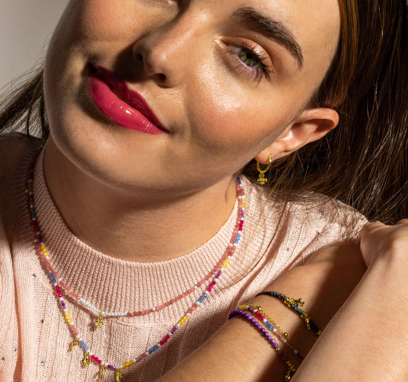 Collar Atlo cierre de Plata de Ley 925, abalorios y colgantes de metal y Cristal Rosa acabado oro 18k. Pide un deseo se caracteriza por diseños de carácter joven, repletos de significado y color, originales a la vez que discretos, que pretenden convertirse en pequeños amuletos.