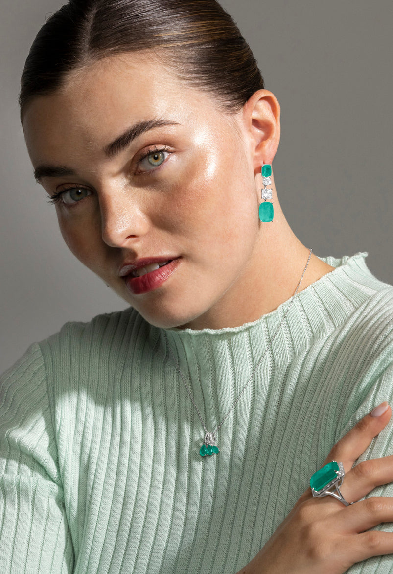 Collar Kaiau de Plata de Ley 925 y Cuarzo Hidrotermal Verde Claro acabado en rodio. Atelier transmite tendencia en cada joya, con diseños que se han ido adaptando a la evolución de la moda y de la mujer. Es la línea perfecta para mujeres únicas que quieren aportar un toque de color a su día a día.