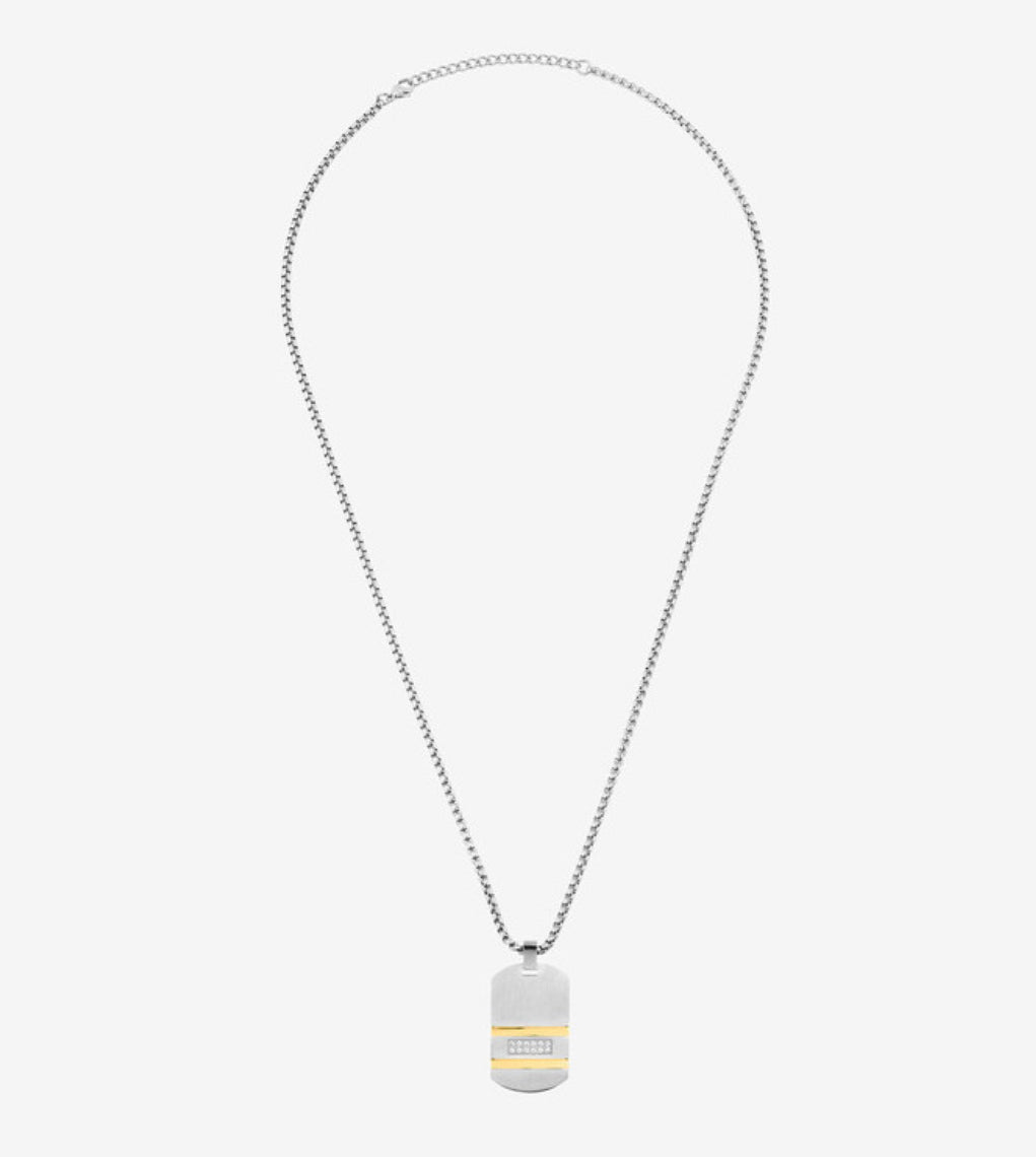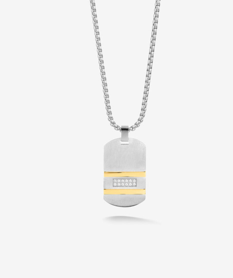 Descubre la colección Martinez, collares con una expresión de estilo diferencial diseñada para hombres inconformistas. La cadena fina de acero sostiene una placa única con detalles bicolor y sutiles incrustaciones de cristales, añadiendo un atractivo toque punk. Fabricado completamente en acero, este collar se convierte en un símbolo de individualidad, capturando la esencia del hombre que busca destacar sin conformarse con lo convencional.