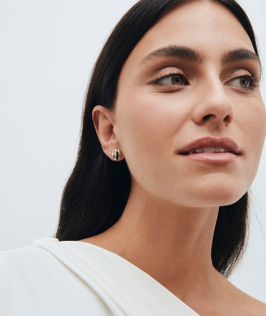 Pendientes botón Horizonte bañados con una gruesa capa de oro macizo de 18 kt, lo que garantiza una mayor durabilidad. Destacan por la piedra Esmaltes en tono marrón chocolate, color protagonista de la temporada, que aporta textura, brillo y un gesto de estilo propio. Tienen una medida de 12 x 10,5 mm y un cierre a presión. De la Colección MA de María G. de Jaime, que nace de una búsqueda intima para capturar esa luz que aparece en los momentos más sutiles y que habita en cada una de nosotras. Piezas con intención, con formas puras y juegos de contrastes, que nos acompañan a diario y encuentran su lugar de forma natural. Porque la verdadera elegancia no deslumbra, simplemente brilla porque tiene sentido.