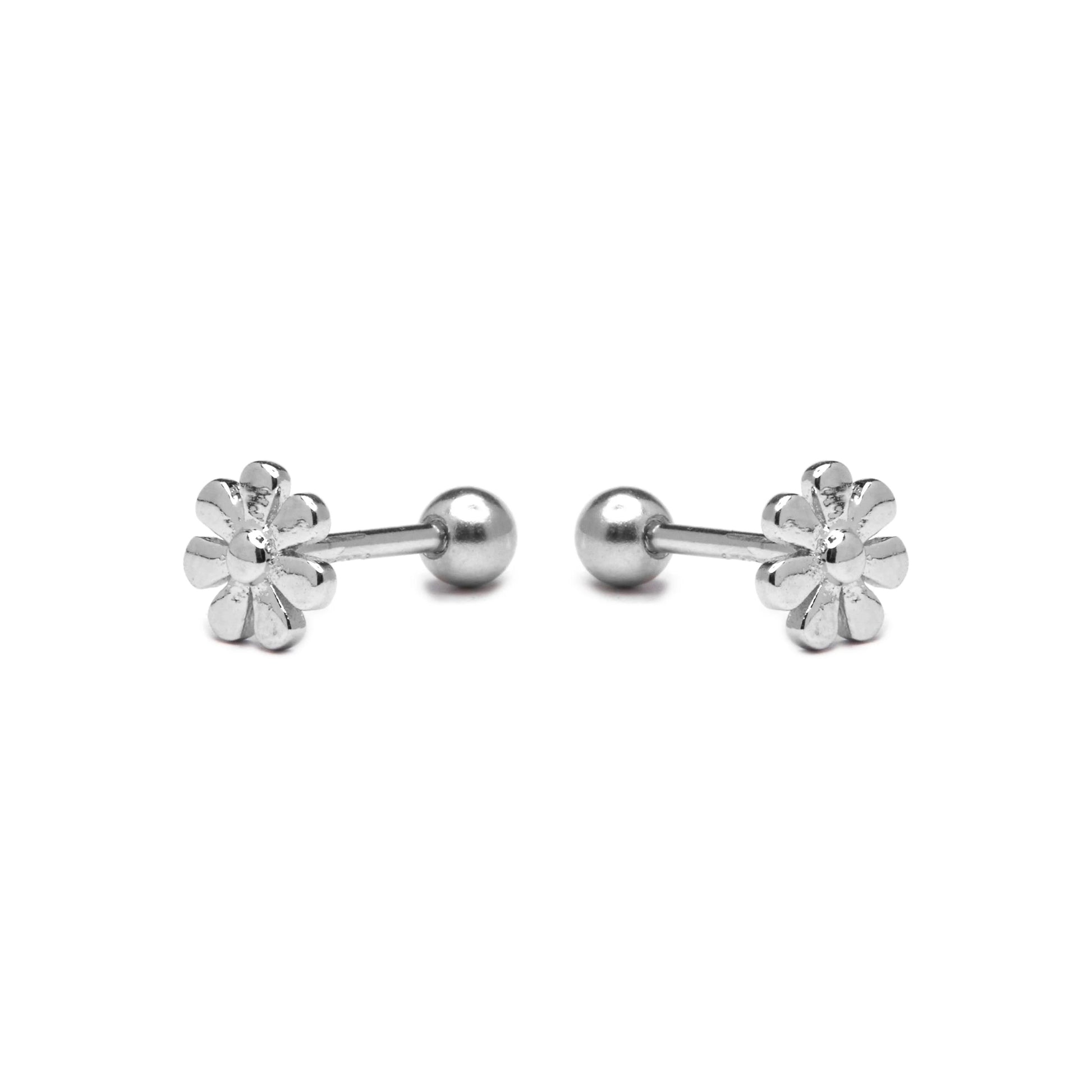 Pendientes Flor de Plata de Ley 925 acabado en rodio. Las joyas para niñas de Luxenter son perfectas para hacer regalos de comuniones joyas de diseño para niñas que buscan una joya especial para su día a día.