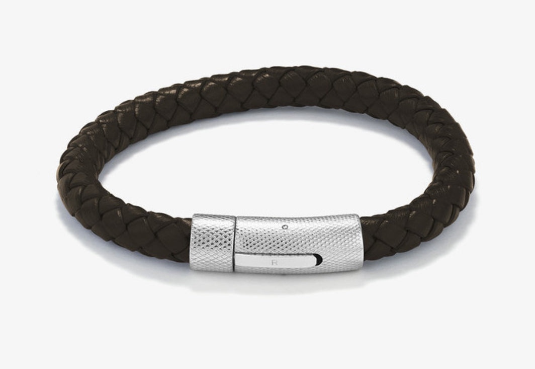 Pulsera Nature de cuero negro para hombre, fabricada con cuero trenzado de alta calidad que aporta un estilo natural y moderno. Su cierre magnético en acero inoxidable asegura practicidad y durabilidad. Este diseño sofisticado es perfecto para complementar atuendos casuales o formales, siendo una pieza clave para quienes buscan elegancia discreta y un aire distintivo.
