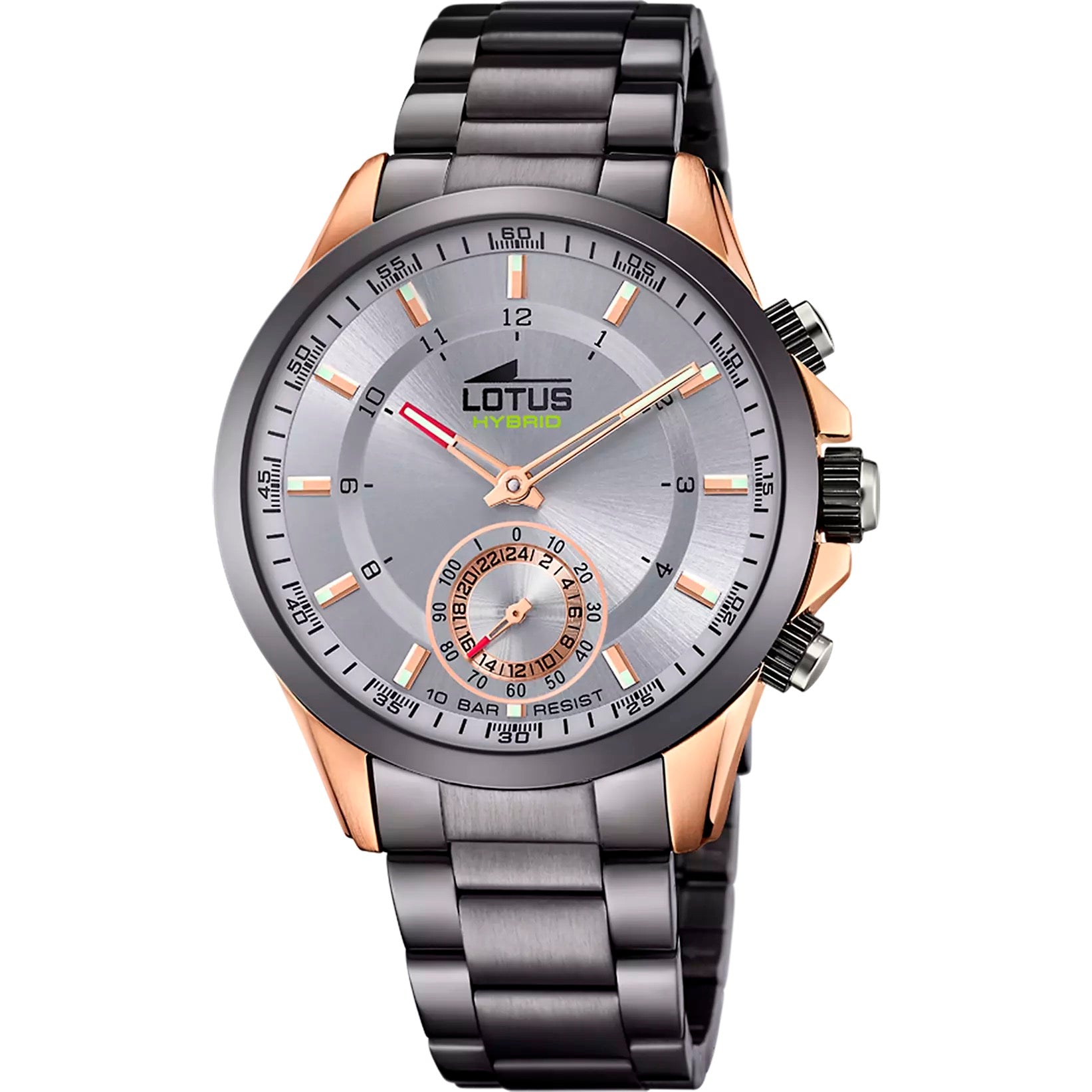 El reloj Lotus 18808/1 para hombre destaca por su caja redonda de acero inoxidable de 43 mm y cristal mineral resistente. Con un diseño robusto y elegante, pesa 162 g y cuenta con una correa de acero inoxidable gris de 20,8 mm con cierre de doble pulsador. Su movimiento híbrido Mbt003.1-l Smart Watch garantiza funciones inteligentes avanzadas y una pila CR3032. Además, ofrece una resistencia al agua de 10 ATM, ideal para el uso diario y actividades acuáticas. Una pieza que combina durabilidad, tecnología y estilo para el hombre actual